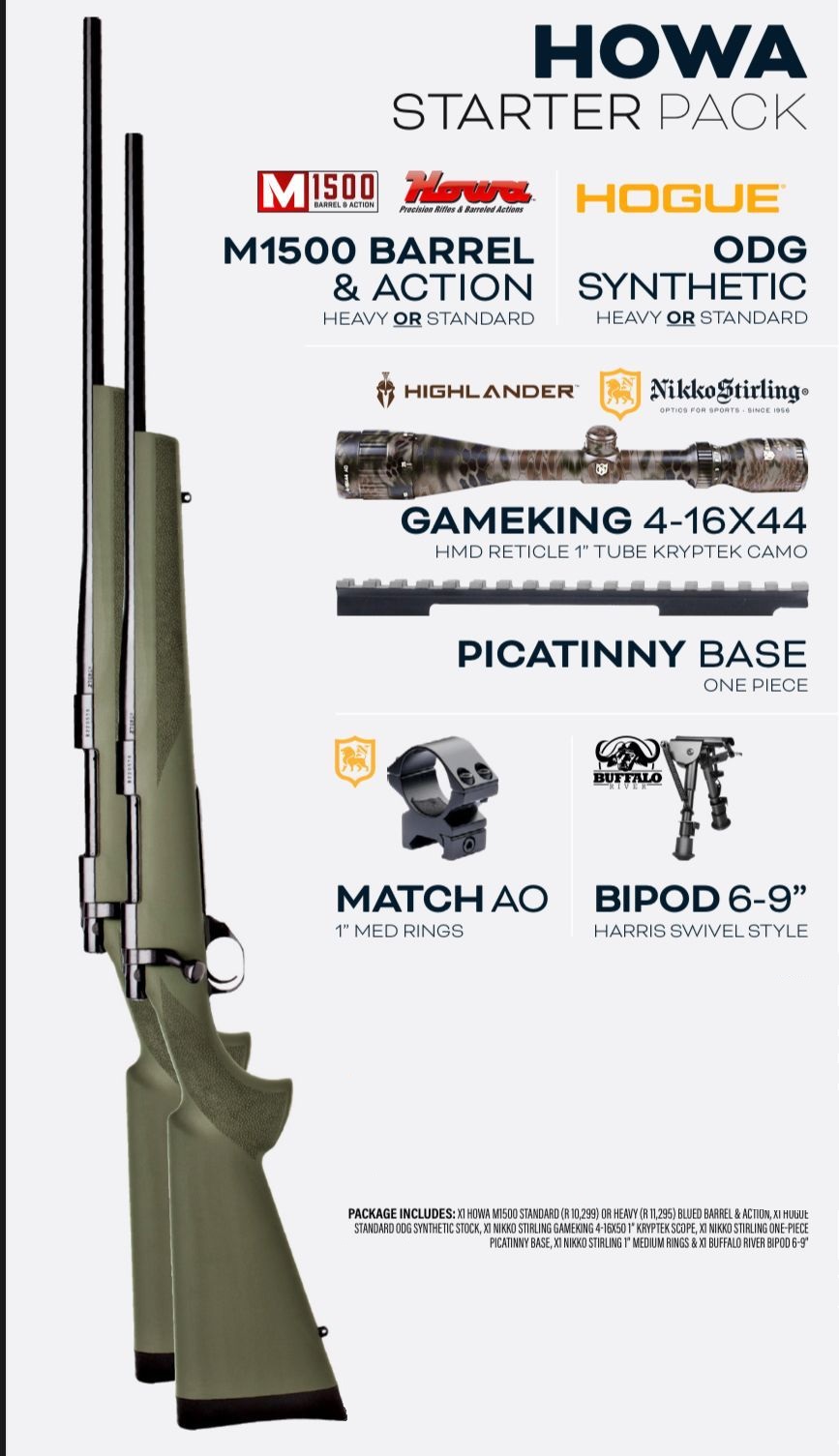 SPECIAL: HOWA RIFLE .308 HB 26" incl SYNTHETIC STOCK (BLACK or GREEN)